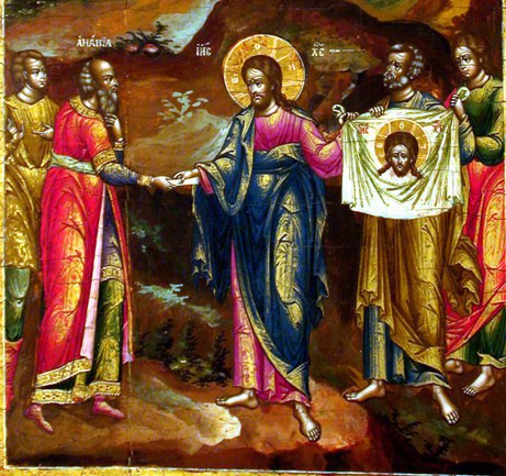 Когда Анан пришел в Иудею и через апостолов передал письмо Господу, он сам встал на камень и начал писать Лик Его. Как ни трудился, не мог написать, потому что Лик Господа постоянно менялся. Затем Господь подозвал к Себе Анана и, назвав его по имени, чем он очень удивился, вручил ответное письмо царю, где восхвалял веру в князя, указывал причину, по которой Он не может прийти в его город, и обещал ему выздоровление чрез одного из Своих апостолов. Затем Христос, потребовав воды и полотенце, умылся и отер Свое Лицо, и на полотенце чудесно изобразился Его Лик, отчего и назван образ Нерукотворным. Вместе с посланием, Анан доставил Абгару и Нерукотворный Лик Спасителя, или, как его еще называют, Убрус – образ из Эдессы. Эта материя, к которой Христос приложил Свой Лик и чудом перенес свой Образ на нее, в дальнейшем стала символом Эдессы и с нее писались иконы.