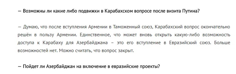 Все это говорят Коровин и Шевченко на голубом глазу, совершенно забывая свои речи от 2013 года, когда первый заявил, что вопрос Карабаха для Азербайджана, можно сказать, закрыт. А про высказывания Шевченко стоит посмотреть отдельное видео по ссылке, в котором, он дает четкие инструкции по блицкригу для ВС Армении.