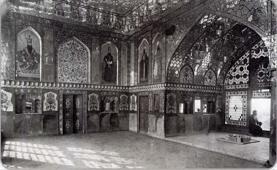 «Шушабанд айван» полностью от арки до потолка был изукрашен осколками зеркала различной величины и формы. Солнечные лучи, врывающиеся из окон, блестели и переливались в этих зеркалах подобно радуге тысячами бриллиантов. Зеркальными осколками были выложены карнизы, окна с цветными витражами. Потолок расписан цветами — розами и букетиками ириса.