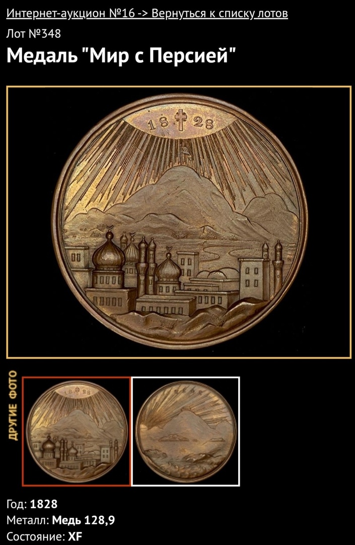 Медаль действительно существует. Точнее, медали. Слева это "Взятие крепости Эривани", а справа "Мир с Персией". Азербайджанцы тупо их соединили. Тут можно было и догадаться, ведь из Еревана иной вид на Арарат. Видимо, они делали это с надеждой, что весь остальной мир так же туп, как и они, что никто не додумается проверить.
