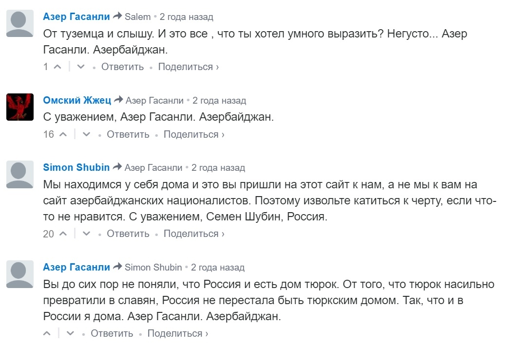 А теперь немного информации об авторе. Автор статьи Азер Гасанли - персона известная. Этот умалишённый прославился тем, что каждый свой комментарий заканчивает подписью, что в своё время стало мемом. Вот представьте, спорите вы в комментариях с оппонентом, количество сообщений переваливает уже за второй десяток и при этом ваш оппонент пишущий со страницы именуемой Азер Гасанли каждое из десятков своих сообщение закачивает словами "Азер Гасанли. Азербайджан." Следует ли говорить, что каждое появление автора в комментариях вызывает у прочих комментаторов лишь смех?